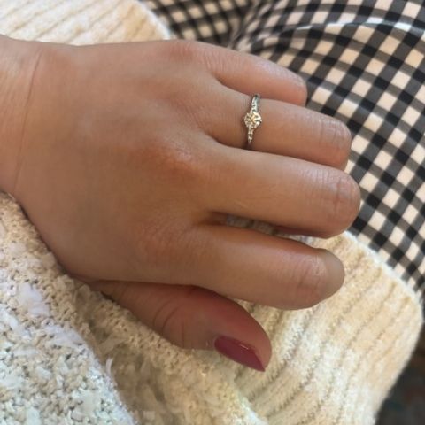 サプライズでもらったのですが、ダイヤモンドがピカピカで実際につけるとギラギラ輝きます✨ふだんはゴールドのアクセサリーしかつけないのですが、プラチナはプラチナで可愛いし、重ね付けもしやすい指輪で気に入っています。