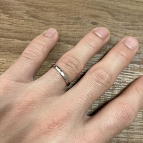 婚約指輪がウェーブ型だったため、重ね付けした時の馴染みやすさ重視で結婚指輪を選びました。 割と細めのデザインで、男性がつけても綺麗に見えるサイズ感だなとおもいます。 デザインや作りがとてもいいのに割とお手頃な価格なのもとてもいいです。