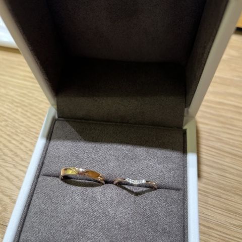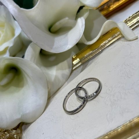 シンプルで落ち着いたデザインがいいねと2人で決めていました。リングは華奢なものも可愛いと思ったのですが、スタッフさんのアドバイスで、年をとっても似合う、少し太いリングにしました。2人でつけてみてしっくり来るものを選びました。