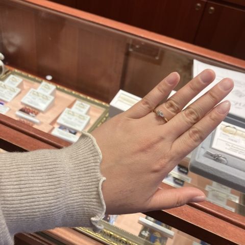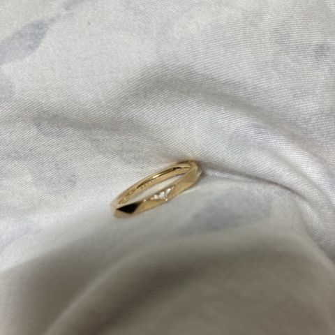シンプルなデザインな指輪が欲しかったので、初めてこの指輪を見たときに「理想のデザインだ!」と思いました! ダイヤモンドが目立つシンプルなストレートタイプで、細めのつくりがとても気に入りました。 「細い指の人に似合うようなデザインになっているのでとてもお似合いです!」とスタッフの方がおすすめしてくださり、「絶対にこの指輪が良い!」と思い購入しました。