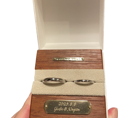自分たちの好きなデザインを選べて嬉しい。その場でデザイナーさんがデザイン画を書いてくれて想像しやすかった。フルオーダーが出来て、とても良かった。自分たちのお気に入りに作れました!ありがとうございました!
