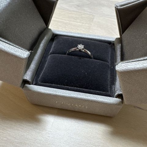 中心部のダイヤモンドの輝きが一番強く、華やかに見えたのでこの指輪を選びました。 ダイヤを支えている部分が少し捻れているデザインですが、リング全体としてはストレートのため、ストレートタイプの結婚指輪と重ね付けした時も違和感なくぴったりハマりました!