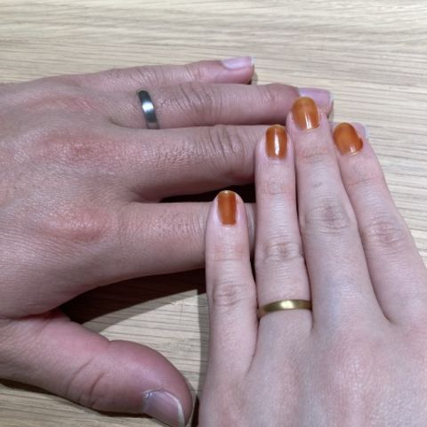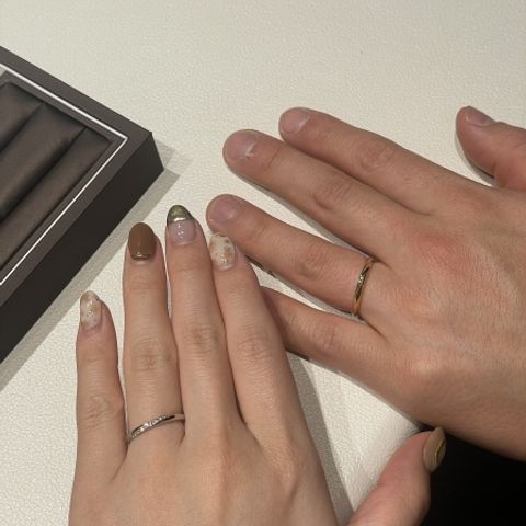 彼はノクターナル、私はノクターナルコンビという半分ペールブラウンゴールド色のものを選びました。 パーソナルハンド診断により、互いに同じタイプだったことから、意外にもすんなり好みの指輪を絞っていくことが出来ました。 見た目だけではなくつけ心地も良く、これだ!!と思えるお気に入りの指輪に出会えて、大変満足しています。