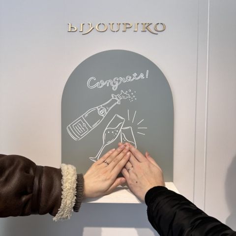 手を動かすたびに、キラキラ光るのが可愛くて選びました! 私の指はむちむちとしているので、どんなデザインが合うのかが不安でしたが、いろいろつけさせてもらって自分にぴったりの指輪を見つけることができました!