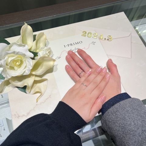 アイプリモさんの指輪は着け心地が抜群に良いです。特に結婚指輪は毎日身につける物なので、デザインも大事ですが着け心地にこだわって選びました。ダイヤモンドのかがやきも十分で納得して購入することができたのでよかったです。