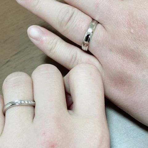 合わせた時に一つになるところが素敵だと思いました。 またつけた時に指が綺麗にみえる、あとはギラギラしていなく、程よい主張で何処にでもつけていけるのが決め手になりました! 2人でつけた際のペア感がとても良く、2人共気に入っています。