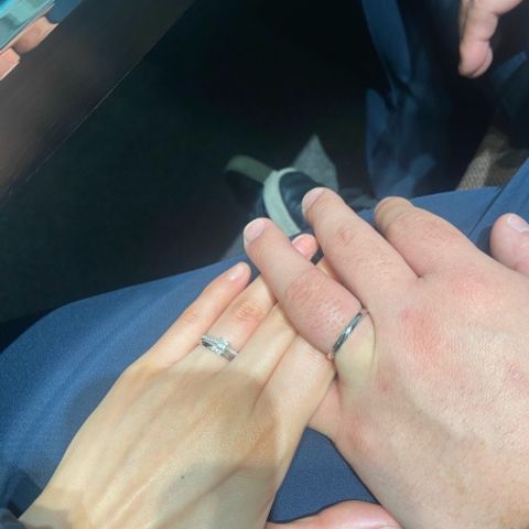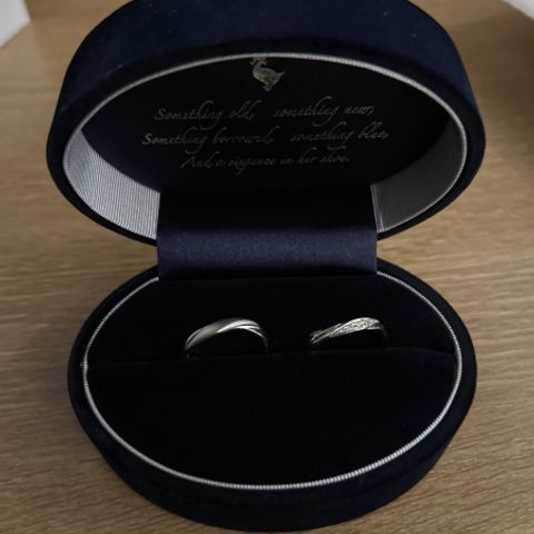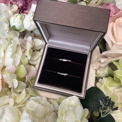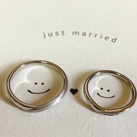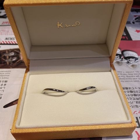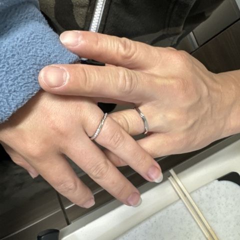 ウェーブラインが向かい合ってる デザインがとくにお気に入りです♪ 指を見るたびに光るダイヤが いつ見ても気持ちを上げてくれます。 付け心地も良くおすすめです! また、旦那の指輪にはマット加工をしていただき すごくおしゃれに仕上げていただきました。 旦那もとっても気に入っています♪