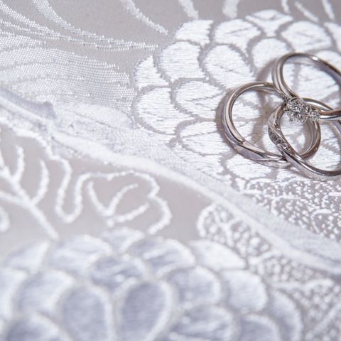 結婚指輪は和の文化を取り入れた、 メッセージが刻まれていて、シンプルにそして 優しさに包まれる幸せなリングです。 婚約指輪は女性の輝かしい人生を歩むという意味で シンプルなリングに素敵なダイヤを施して頂いています。