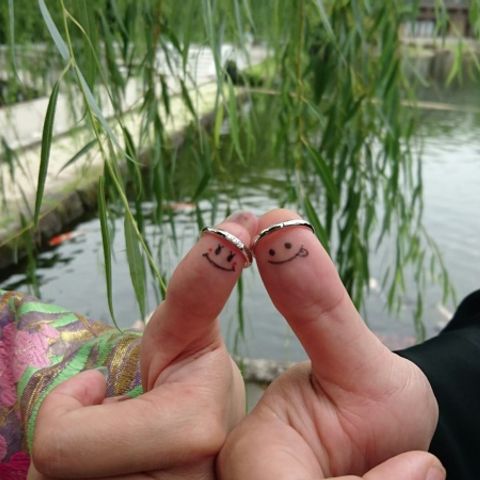 プラチナの素材を選び、彼に合った指輪のデザイン、私に合った指輪のデザインにしました。プラチナの棒から2人で指輪を作る工程はとても楽しく、いい思い出になりました。手作りしたあとは刻印を入れてもらい、さらにキレイに仕上げてもらい、2人とも満足しています。