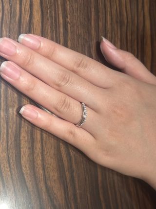 付け心地がよくてとても気に入っています。 見た目はシンプルですが、キラッと光る指輪を見るとテンションがあがります! 手にフィットしており、指輪をつけていない感じがします。 皆様にも付け心地を実感していただきたいです!