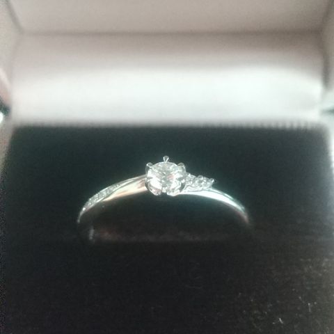 婚約指輪といえば一粒ダイヤが主流ですが、個人的に好みではなく、デザイン的にもどうしてもエタニティじゃないと嫌でした。結果大正解でした。服の着替えでも思いっきり気にすることもないですし、引っかかる事なく普段から日常的に使えてとても気に入っています