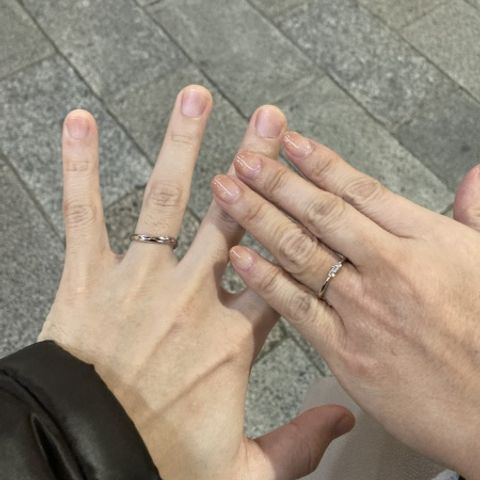 結婚指輪のキラキラ感もありつつ、普段つけていても違和感のないものを選びました。お互いの好みもあるため、同じセットのものではないですが、種類が多いので、互いに好きなデザインを選びつつペアとしても違和感のないものがみつかりました。