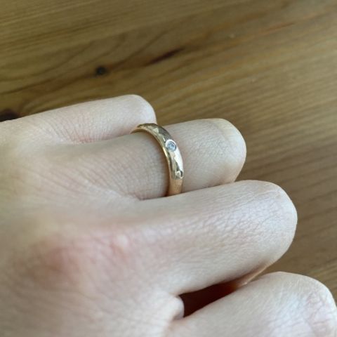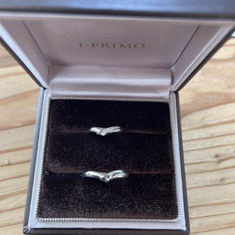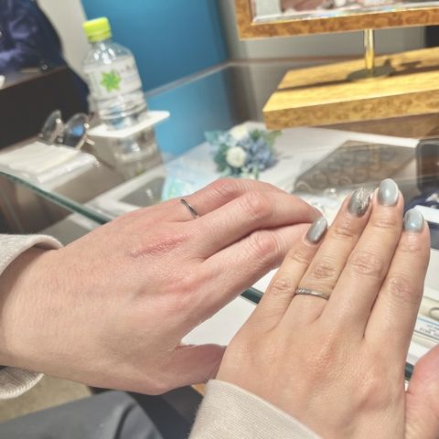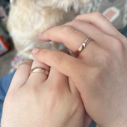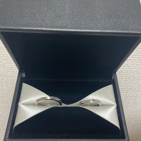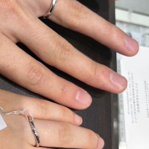 お互いの憧れや好きがつまった指輪をつくることができました。夫はライン、私はダイヤモンドをいれてつくっていただきました。つけ心地やサイズ感もとても良いです。指輪を遠目から見てもわかる輝きに感動しました。