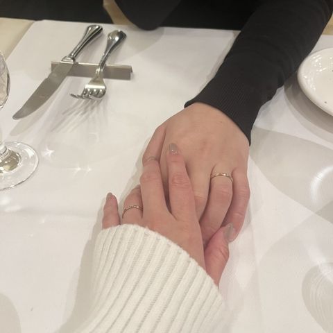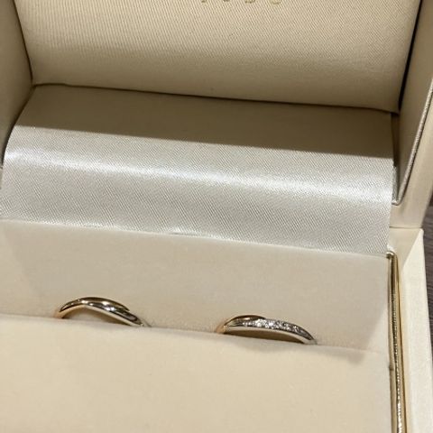 ウェーブラインにダイヤモンドが流れるように入ってる為、本当に綺麗 アルチェステは、お互いを思う心が鏡のように響き合い、ウェーブラインが向かいあってお互いを映す合わせ鏡を象徴しています。 指輪に込められた意味も素敵でお気に入りです。 私はアクセサリーを普段着けないので、デザインの次に着け心地をかなり重視していました。 その為、AIとスタッフの方が指の長さを測定してくれて、自分の手に合う指輪を探してもらえてとても良かったです。 私は水かきが深いタイプだったので、ウェーブがある指輪の方が着け心地が良いとのことでした。 同じく、彼も水かきが深いタイプだったのでせっかくなら同じデザインのものにしようとアルチェステにしました。 彼のは、ウェーブの部分にマット加工をしてあります。 マット加工すると一味違った指輪でかなりおしゃれです。