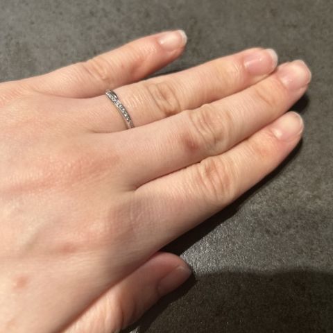 とにかく着け心地とデザインが気に入りました。 普段アクセサリーを付けないためさり気なくキラキラしているリングを探しており、複数の店舗をまわって着け心地とデザインのどちらも満足がいくものを見つけましたᕷ*.°