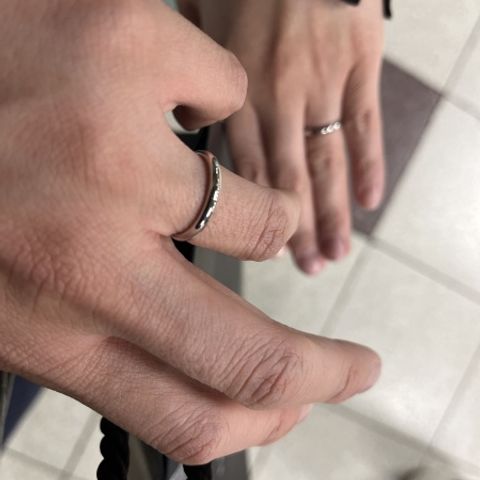 デザインがとてもよく、手に馴染みます。 はめて1日経っていませんが、指輪をはめていないとむしろ違和感があります笑 男性側の指輪は、無骨なデザインのものが多いですが少し遊び心が入っているデザインが気に入りました! 鏡面じゃない加工も出来るのでキラキラしたものが苦手な方も安心です。