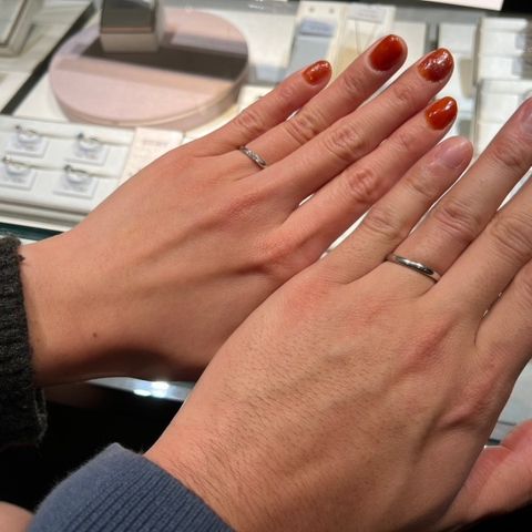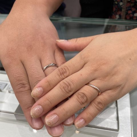 あまり派手すぎず、ダイヤが少しついている指輪を探していました。他社の指輪も見ましたが、メンテナンスや価格などを比較したところ、2人とも理想にあったので決めました! 付け心地も良く、大満足しています!!!