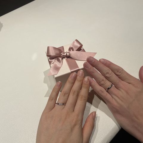 デザインが丸みを帯びていてとても可愛いです!付け心地もとても良く、すっと指に馴染むようになっていて、とても好ましいと思いました。パートナーとどちらもがいいと思える指輪だったので、選んでよかったなと思いました。