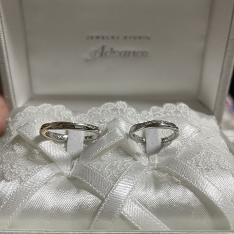 ウェーブタイプの指輪を選択しました。どの角度から見てもダイヤがキラキラ光るところがおすすめポイントです! 男性用女性用で別々のデザインのものにしましたが、どちらも素敵でお互い納得できるデザインを選ぶことができてよかったです。 付け心地も最高です!