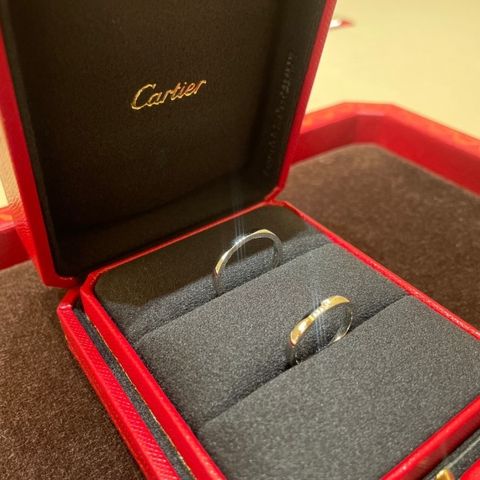 デザインは、パリのヴァンドーム広場にある螺旋階段を模して作ったとされています。 螺旋が続く(二人の関係が長く続いていく)を意味しています。 付け心地がとても良く、普段指輪をしない人でも違和感なく付けられます。デザインのおかげでダイヤが無くてもキラキラして見えます。 ダイヤ付きが欲しいと思っていたため、1つダイヤ付きにしました。8つ付いているデザインもありましたが、デザインと相まって華美に見えすぎたので1つにしました。 彼も同じデザインです。 指輪巡りをしている中でダイヤの輝きの虜になり彼もダイヤ希望に。 彼は指が細いため、ダイヤ無しは幅が大きくなり主張が激しかったのですが、ダイヤ付きは少し幅が狭く指へのフィット感が増し、彼もお気に入りになりました。 さらに、こちらのデザインはサイズ調整可能(サイズを大きくする際には地金をレーザーで足しながら)とのこと。 アフターサービスも充実していたためこちらを購入しました。