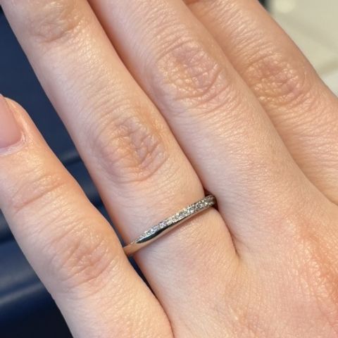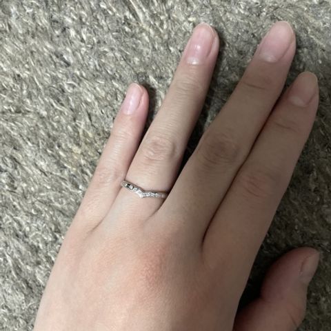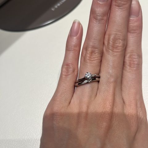 指輪のデザイン、付け心地ともに、とても気に入っています!あまり派手にならない指輪を探していました。ダイヤがたくさんあるのはちょっと、、、と思っていましたが、実際に試着してみると、イメージが変わりました。他社も見学しましたが、付け心地が1番よかったのが決め手です。