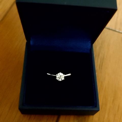 指のサイズが分から図困っていたのですが、後から一緒にサイズやデザインを選べるのがとてもいいなと思いました。 ダイヤモンドは輝きがありつけたときに指にとても似合っている印象です。カラットは0.4カラットと少し大きめのものにしました。