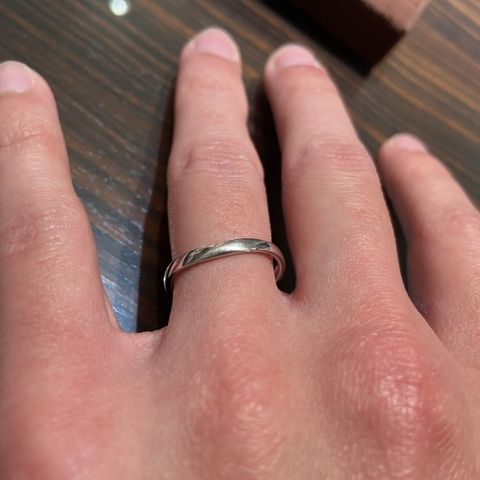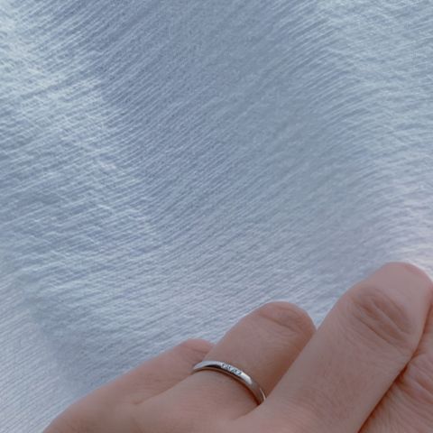 主張しすぎず、シンプルすぎずとてもお気に入りです! 他にもたくさんの指輪を見ましたが、一目惚れ。 実際に受け取ったときは本当に感動でした。 思ったよりも素敵でした。 キラキラ感も良く、メンズの二次加工も素敵でした。