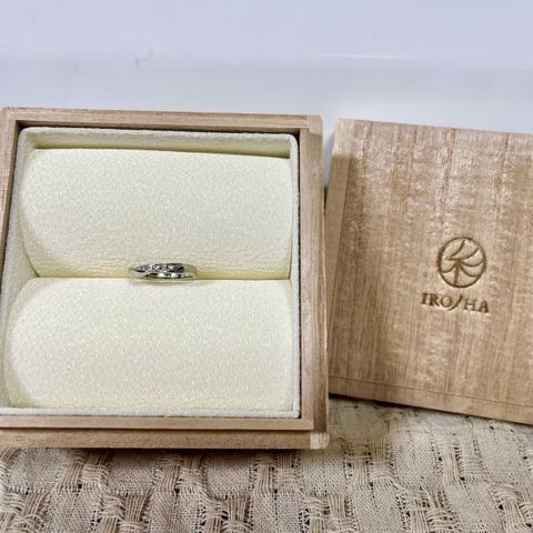 指輪はケレースというシリーズの指輪で合わせました!このシリーズはプラチナ99.9がある為肌が弱い人でも安心して着けれます。またダイヤが小さめなのでキラキラしすぎず、どんな服装にも合わせやすく着け心地も良いです。