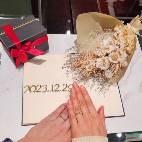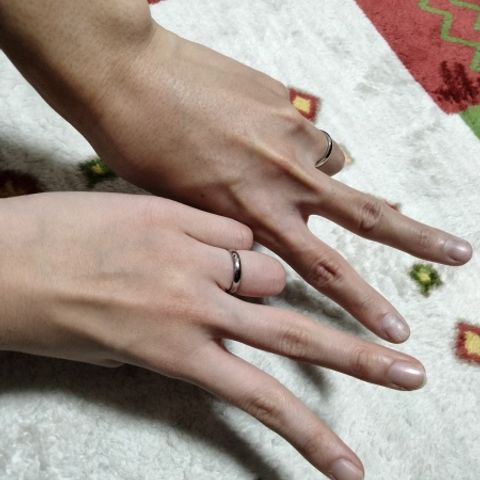 フルオーダーメイドで納得した指輪を作ることができました! サイズはとても迷ったのですが、入籍指輪でサイズを試すことができたのは良かったです。 結果、私はサイズが少し大きく、旦那はサイズが少し小さかったため、結婚指輪のサイズを変えることができました。