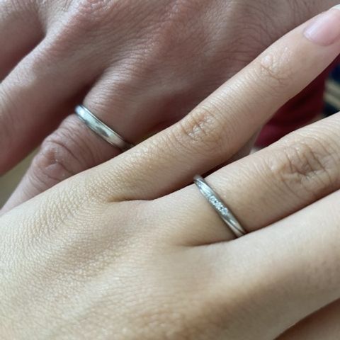 結婚指輪なので、シンプルで長くつけられる飽きのこないデザインにしました。きらきらが好きなためわたしは一つダイヤモンドを入れてもらいました。婚約指輪と重ねてつけても、お互いが引き立ち合いとても素敵です。