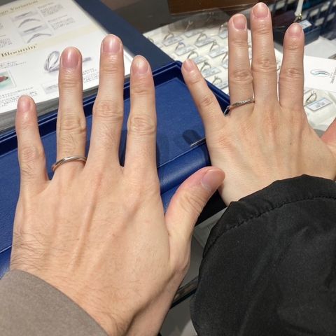 デザインがシンプルでリングの幅や、プラチナの物などの条件で探していました。これからも身に付ける物だからこそ、長く持っていても飽きない、年齢を重ねても馴染む物を持ちたいと考えていました。 結果、納得のいく指輪を見つけることができたと思います。