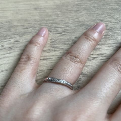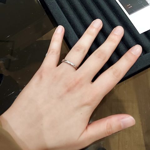 ストレートタイプがいいと思っていましたが自分の指の形や長さによって似合う指輪を提供していただいてとても考え方も変わり結局すこしウェーブがかった指輪が1番可愛かったです。なんといっても着け心地がよく、つけている感覚がないくらいです。