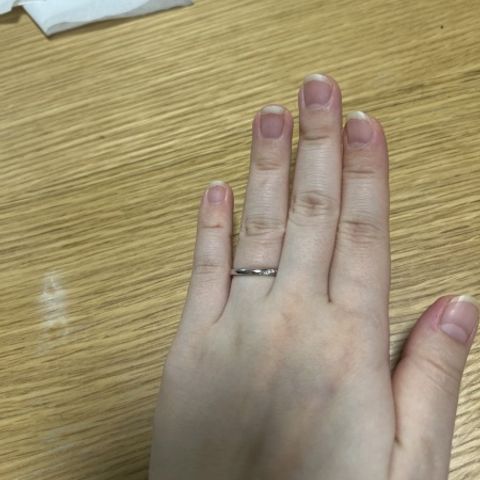 シンプルでつけ心地も違和感なくいい感じです! デザインによって指輪の大きさもどれくらい誤差が出るかなど、細かく教えていただいたおかげでぴったりの指輪を作っていただくことができました! 普段つけたままにする為デザインもシンプルなものにしました!