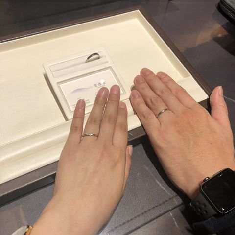 結婚指輪の購入をしました。指輪のデザインで迷っていましたが、店員さんが丁寧に、色んな商品を紹介してくださりました。最終的に選んだ指輪はキラキラしていて、とってもかわいいです。婚約指輪との相性もバッチリです!