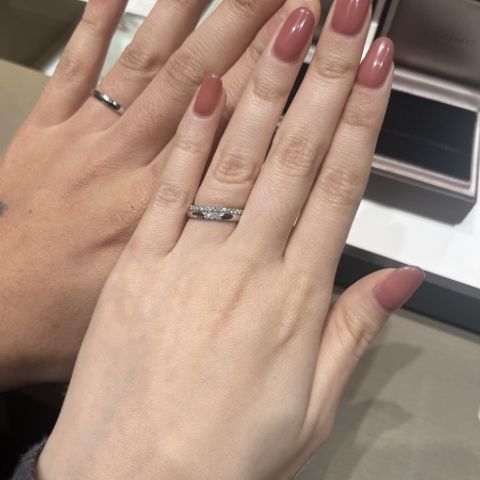 婚約指輪もI-PRIMOさんで購入してもらっていたので、重ねてつけるにも相性がいいと思いI-PRIMOさんで結婚指輪も購入しました!予想通り、重ねて着用した際にも合わせやすく、デザインもとても満足しています。