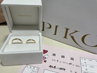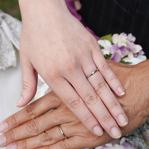 たくさんの種類の中から私たちのイメージに合うものを選んでいただき、素敵なものを選ぶことができました。つけやすく、デザインも可愛いのでとても気に入っています。これから毎日つけることになるので楽しみです。