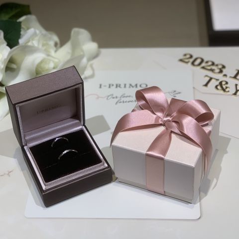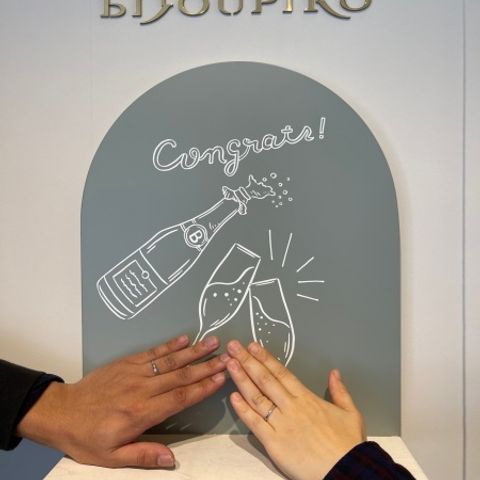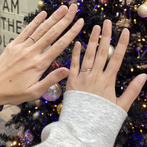 2人で「シンプルなデザインがいいね!」という思いから始まった指輪探し。シンプルな指輪はどこのお店にもあるからこそ、アフターサービスと付け心地に拘りました。似合う指輪の診断もしてくれるので、納得のいく指輪選びができました!