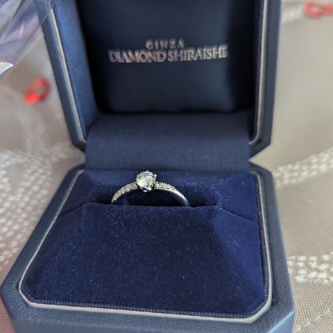 指輪デザインはお花の形のものが良かったのでそれを購入した お花の形にすることでダイヤがより大きく見えるためおすすめ ダイヤの選び方などを詳しく教えてもらったのでオススメのものを購入しました。リングの部分もスルッと入って気持ちいい感じです。