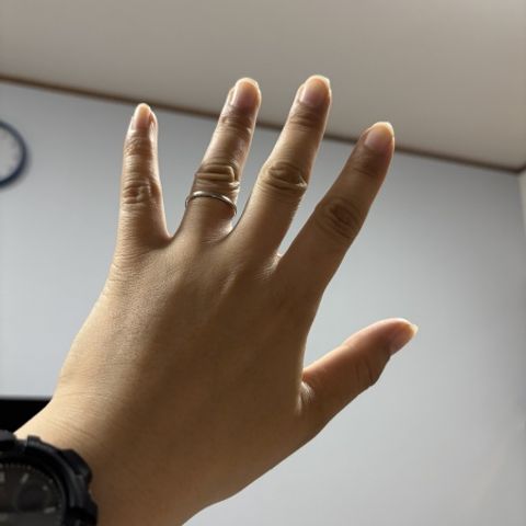 シンプルかつ上品なデザインで、どんな手も綺麗に見えてとてもつけてて良いです。 S字とストレートの中間のような見た目で角度によって、見え方が違い、印象が変わるところがお気に入りポイントです。 波のようのウェーブがとても気に入りました!