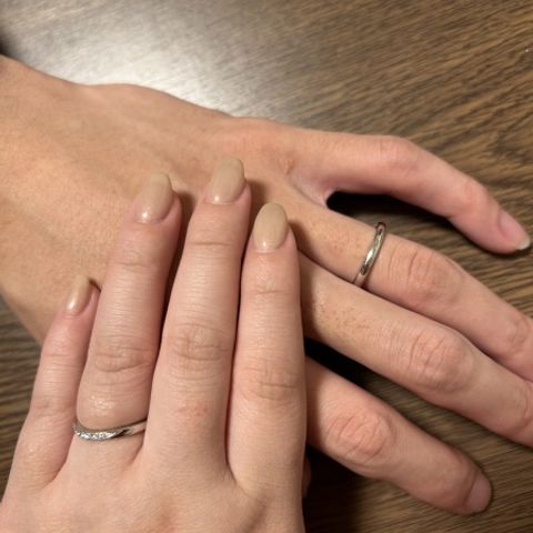 シンプルで飽きずにつけ続けられるものを選びました。また、婚約指輪を選んだおみせでもあり、思い入れや担当スタッフの方がとても素敵な方だったことも後押しとなり、2人とも一致で購入することになりました。長く使えると嬉しいです。