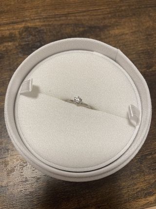 指輪のデザインがとても可愛くて この真ん中にあるダイヤがとてもお気に入りです!! 派手すぎずシンプルでもない丁度いい感じがたまらないです!! あたしは指輪を何個かしてるんですけどその指輪とも相性が良くてこの指輪にしたいと思いました!