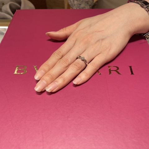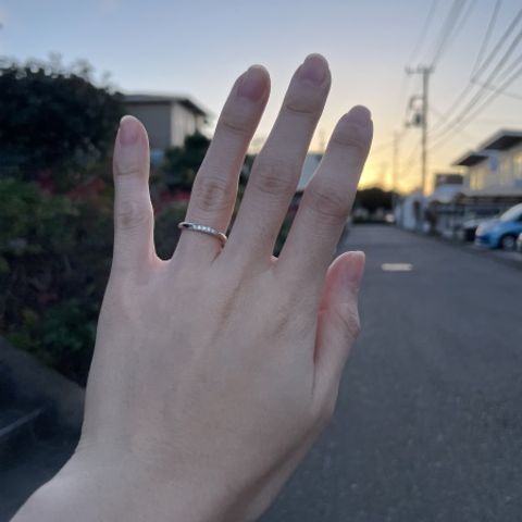 定番のパヴェタイプの指輪で探していましたが、デザイン、太さ、厚み、着け心地、角の柔らかさ?輝き、どれをとっても1番魅力的でした。試着時にすぐ心決まった一生の思い出となった指輪です。透き通るような輝きが手を綺麗に見せてくれます。驚いたのが身内だけでなく知らない方から着けていた時に褒められたことでした。