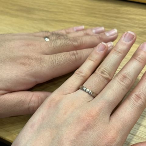 結婚指輪を選ぶ際は、サイズや着け心地の良さは大切なポイントだと思います。角に丸みを持たせているなど、指なじみが良いものほど着け心地も良くなるそうです! 店舗で試着して、リングサイズと着け心地の良さを確認しました! 時間帯や体調によってむくんでしまったり、試着のタイミングによっては指のサイズが変化したりすることもあるみたいなので、日を改めるなどして、何回かサイズ感や着け心地を確認すると完璧だと思います!!