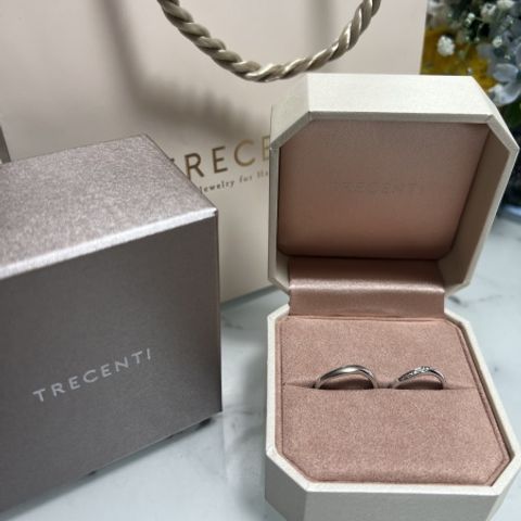指に当たった時の付け心地がいいのと デザインがきれいでした!また店員さんが熱心に説明してくれました。 ダイヤの輝きが綺麗だったのと、 外側の色が薄いブラウンになっており、肌馴染みがいい色だったので、普段アクセサリーをつけない2人にも合わせやすいデザインでした。