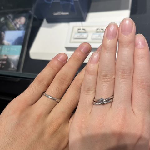 毎日着ける指輪なので、着け心地や着けた際のデザインを重視しました。特に女性側はダイヤの位置等に拘りが見られ、非常に良いと感じました。今回選んだノエルに込められた意味も相まって2人とも納得のいく指輪を選ぶことが出来ました。