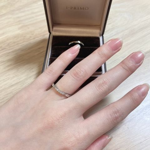 指輪のデザインが多い中でウェーブタイプの指輪を探していて、色々見せてもらったなかでルキナという商品を選びました。ウェーブのねじれの部分にダイヤが敷き詰められていて、キラキラしていて可愛いです!!!!!