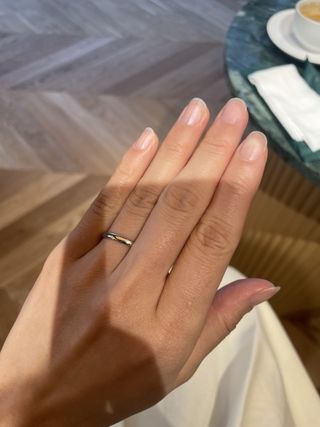 2つとても気に入ったデザインが見つかり、迷っていたときに試着したところ、つけ心地がとてもよかったのでこの指輪に決めました。軽くて薄めの指輪のほうがつけ心地が良いと教えてもらいました。結婚指輪は日常使いなので、つけ心地はとても大事だと今実感しています。