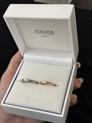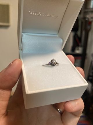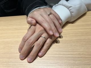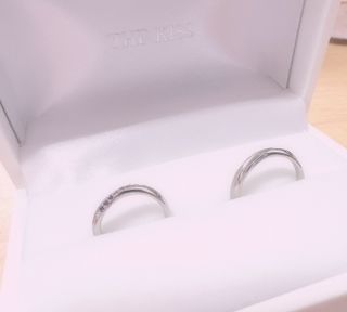 フルオーダーで自分の理想の指輪ができました。最初は私のこうしたい、という注文を聞いていただき、デザイナーさんがさらさらといくつかデザインを提案していただきました。さらにそのあと、自分でこうしたいというのを考えてお伝えし、最終的なデザインを決めました。お値段も予算の範囲内ででき、さらにクリーニング無料、全国展開しているお店というのがこちらで頼んだ決め手でした。 中の文字入れは、有料のものもありますが、4つくらいのフォントなら無料、さらにひらがなが入れられるというのもよかったです。