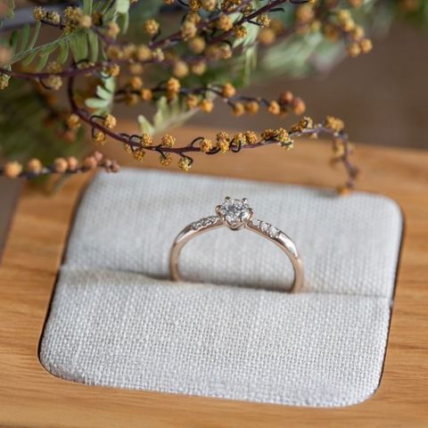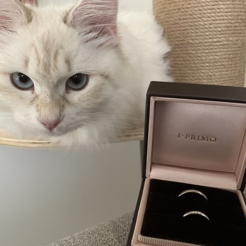 指輪のデザインにそれぞれストーリーがあって素敵でした。 ノクターナル、星時計にインスパイアされた指輪とのことです。 妻側には北斗七星の7粒のメレダイヤ、 夫側の指輪の内側には北極星モチーフの一粒のダイヤがついてます。 夫側の指輪の一部にはマット加工も施してあり、オシャレだな〜と主人も喜んでいました。 角がなく、とても付け心地の良い指輪だと思います。 付けっぱなしにしていても違和感なく過ごせています。 妻側の指輪の7粒のメレダイヤを一粒ピンクダイヤにしてもらったので、毎日素敵なキラキラを眺めています。