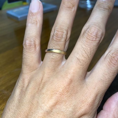 シンプルだけど、リングの加工の仕方など自分なりにこだわりました。 決め手となったのは自分の指にすごく馴染んでいる感じがあり、一旦は他の店舗も見に行ったのですが、やはり宝寿堂さんの指輪が良いと思い購入しました。
